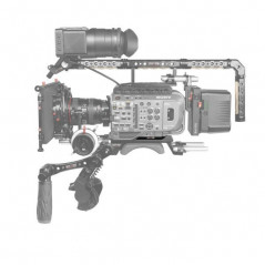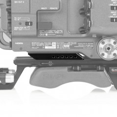 Tylna płyta wkładki to aluminiowa płyta wsporcza CNC kompatybilna z kamerą Sony FX9. Płytka mocowana jest do korpusu kamery za pomocą trzech śrub mocujących M4. Środek płyty jest wyposażony w (3) otwory gwintowane 3 / 8-16 i (3) 1 / 4-20 do montażu na statywie. Duża powierzchnia płytki zapewnia również niezbędne podparcie, gdy aparat jest mocowany na statywie lub ramieniu.
