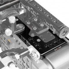 Lekka i wytrzymała aluminiowa płyta górna obrabiana CNC, zaprojektowana tak, aby pasowała do natywnego górnego uchwytu Sony FX9. Górna płyta oferuje szereg gwintów (12) 1 / 4-20 i (12) 3 / 8-16 ze standardowymi otworami antyobrotowymi Arri, które można wykorzystać do mocowania opcji wokół aparatu. Górna płyta Sony FX9 jest również wyposażona w gwintowany otwór do włożenia szpilki czujnika FX9 i zacisku kabla wizjera FX9.