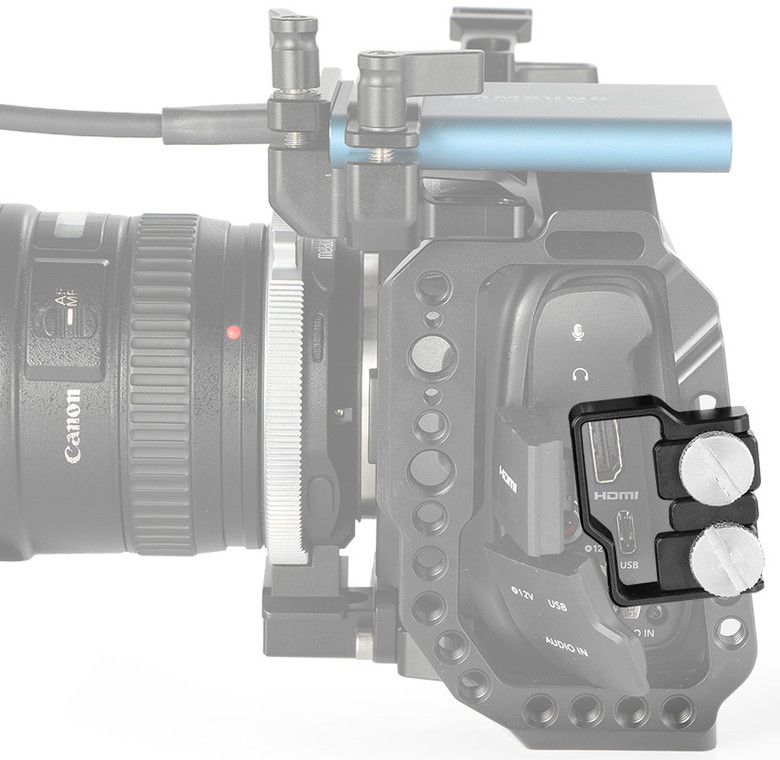 Smallrig 2246 to zabezpieczenie kabla i złącza HDMI oraz USB-C dla użytkowników kamery Blackmagic Pocket Cinema Camera 4K.