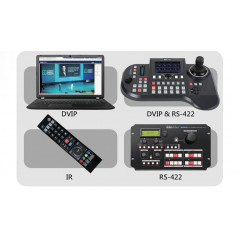 Porty RS-232, RS-422 i RS-485 do wykorzystania poleceń DVIP i VISCA w celu integracji z większymi systemami sterowania.