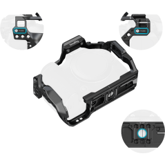 Wbudowane mocowanie zimnej stopki mieści mikrofony i światła wypełniające, a otwór na pasek na nadgarstek mieści paski na nadgarstek.Specjalny otwór na pasek naramienny został zaprojektowany tak, aby obiektyw aparatu był skierowany w dół podczas przenoszenia, co zwiększa bezpieczeństwo.