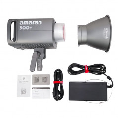 Pobór mocy Amaran 300c wynosi 300 W. Dzięki popularnemu mocowaniu Bowens, lampa może być używana z różnymi modyfikatorami światła, takimi jak softboxy, beauty dishe czy strumienice. Konstrukcja lampy zawiera również standardowy otwór na parasolkę. W zestawie do lampy dołączono klosz Hyper Reflector, który umożliwia zawężenie strumienia światła z 110 do 55°. Dzięki żłobkowanemu wnętrzu, lampa dodatkowo wzmacnia światło, osiągając wartości aż 26 580 luxów z odległości 1 m dla temperatury 5600 K.