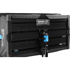 Akcesoria obejmują magnetyczny adapter bazowy z zestawem gwintów 1/4"-20 dla każdego rogu lampy PavoSlim, przedłużacz, softboxy w wersji składanej i ściśliwej oraz zestaw łącznika dwupanelowego dla lampy PavoSlim 120C.