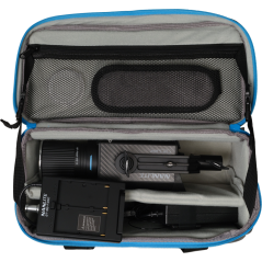 Forza 60CR RGBLAC jest dostarczana z adapterem Bowens i uchwytem na baterie, które umożliwiają korzystanie z akumulatorów NP-F, miernik żywotności baterii LED oraz mocowanie na statywie. Dzięki temu zestaw jest gotowy do pracy w każdym środowisku, a wszystkie elementy mieszczą się w wyściełanym etui transportowym.
