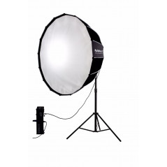Idealny do portretów, strzałów w głowę, wywiadów i mody, 120 cm Para 120 Softbox z Bowens Mount od Nanlite to 16-stronny modyfikator w kształcie sześciokąta. Konstrukcja Para 120 jest wzmocniona 16 wytrzymałymi prętami nośnymi, a srebrne wnętrze maksymalizuje moc źródła światła. Oferuje skoncentrowane, miękkie wydruki z wyrazistą, wyraźną krawędzią, która nadaje obiektowi wymiar i szczegółowość, a także naturalnie wyglądające światło reflektorów w ich oczach. Dodatkowo, paraboliczny kształt modyfikatora powoduje znaczny spadek na brzegu pola, a zatem zwiększony stopień kontroli kierunkowej, zmniejszone światło rozlania i łatwe wtapianie.