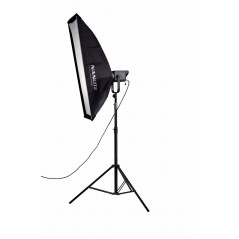Dramatycznie zmiękcz światło z lampy błyskowej lub źródła światła dzięki asymetrycznemu softboxowi Stripbox firmy Chimera o wymiarach 45 x 110 cm. Modyfikator ten, kompatybilny ze światłami wykorzystującymi pierścień szybkiego montażu Bowensa, ma cieńszy kształt niż standardowe softboksy. Tworzy to wąski strumień świetlny o ograniczonym rozlewie, który doskonale nadaje się do oświetlenia akcentującego, włosów i obręczy, a także renderuje długie, eleganckie akcenty na szkle i przedmiotach odbijających światło. Stripbox ma zdejmowany panel przedni i srebrne wnętrze dla maksymalnej wydajności. Dodatkowo, stripbox jest wyposażony w odpinaną kratkę z tkaniny dla dalszego zawężenia wydajności i rozlania.