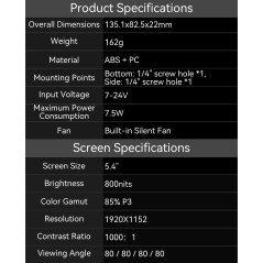 Portkeys LH5C to kompaktowy, 5,4-calowy monitor podglądowy o jasności 800 nitów i rozdzielczości 1920x1152. Oferuje precyzyjne odwzorowanie kolorów (100% Rec.709, 85% DCI-P3), dotykowy ekran, obsługę 3D LUT oraz przewodową kontrolę kamery.