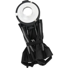 Softbox w formie ośmiokąta został wyposażony w praktyczny system szybkiego rozkładania i składania – dzięki wysuwanej zakładce i mechanizmowi zwalniającemu. Dodatkowo, w zestawie znajduje się siatka (grid) mocowana na rzepy, która umożliwia precyzyjne kierowanie światłem.