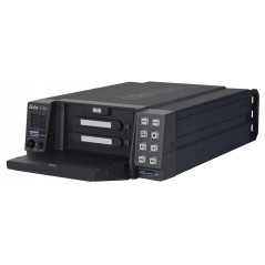 Skompresowane filmy są zapisywane na dwóch 2,5-calowych dyskach SSD. Jeśli jeden dysk jest pełny, nagrywanie będzie automatycznie kontynuowane na drugim dysku. Możesz łatwo rozszerzyć pamięć w celu ciągłego nagrywania. (Obsługuje tylko dysk SSD Samsung 860 Pro)