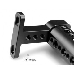 SmallRig 1638 Top Cheese Handle to lekki, aluminiowy uchwyt górny do kamery lub aparatu wyposażony w dodatkowe mocowanie akcesoriów na zimną stopkę. Dzięki serowej budowie posiada wiele dodatkowych punktów montażowych z gwintem 1/4" i 3/8". Mocowany do klatki lub riga za pomocą dwóch śrub 1/4".