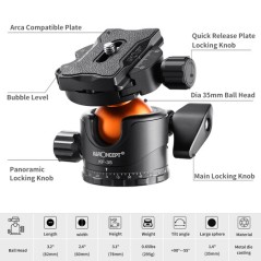 - Precyzyjna kulowa głowica BH-36L o średnicy 35 mm z płynnym ruchem 360° – gwarancja perfekcyjnego kadrowania.