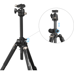 Statyw został wyposażony w kolumnę centralną, którą można łatwo wyjąć, a także odwrócić – co doskonale sprawdza się przy zdjęciach makro, produktowych oraz ujęciach z nietypowych kątów. Dodatkowo kolumnę można ustawić w pozycji poziomej, co zwiększa elastyczność pracy na planie.