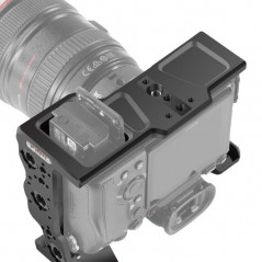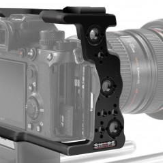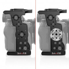 Wykonana z obrabianego CNC aluminium klatka jest specjalnie zaprojektowana dla Sony Alpha a7S III. Kamera jest mocno przymocowana do klatki za pomocą śruby 1 / 4-20 i klucza imbusowego. Klatka jest zaprojektowana z następującymi opcjami montażu: (1) zimna stopka, kilka otworów gwintowanych 1 / 4-20 i (7) otwory gwintowane 3/8 ″ -16 z antyobrotowym układem otworów Arri. Konstrukcja klatki umożliwia również łatwy dostęp do wszystkich przycisków sterujących, wyjść bocznych, karty pamięci, komory baterii, przycisku zwalniania obiektywu i gorącej stopki aparatu systemu audio. Wszystkie drzwi i zamki są w pełni użyteczne, gdy kamera znajduje się w klatce, a jej inteligentna konstrukcja pozwala na obsługę kamery bez konieczności zdejmowania drzwiczek kablowych. Ponadto haczyki paska mogą pozostać przymocowane do aparatu podczas wkładania do klatki. Odłączany system blokujący, który zabezpiecza i utrzymuje w miejscu 3 lewe kable, a także kabel 4K FULL HDMI jest dołączony do klatki. W dolnej części klatki znajdują się (2) gwintowane otwory 1 / 4-20 do zamontowania szybkozłączki statywu w celu zmiany konfiguracji ze statywu na ramię. Można dodać adapter DELTA do montażu na płycie bazowej 15 LWS (brak w zestawie). Rozetę ARRI można dodać po prawej stronie, aby zamontować kompatybilne akcesoria.